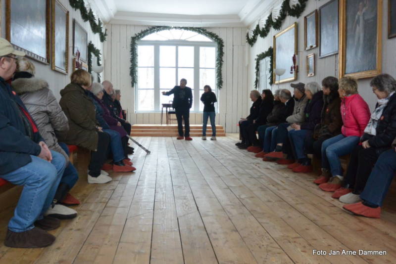 Vi startet turen noe tidligere enn planlagt, da været ikke var av beste sort. Turen gikk fint og fram kom vi i tide og i tett snødrev og blank holke kom vi oss fram til hovedbygningen. Her ble vi tatt i mot av et par guider og vi ble delt i to grupper.  Før vi igjen møttes i Rikssalen. Her avsluttet vi et interessant foredrag med et rungende: ”Enig og tro til Dovre faller”. Disse ordene runget også gjennom Rikssalen den 20. mai 1814. Med denne eden viste eidsvollsmennene sitt samhold, de la krangel og stridigheter bak seg, og med hender som holdt sammen i en broderkjede avsluttet de seks intense uker på Eidsvoll. Mens vi 201 år senere tok turen videre til gamle Nebbenes kro for en deilig lunsj, før vi satte kursen hjem igjen.