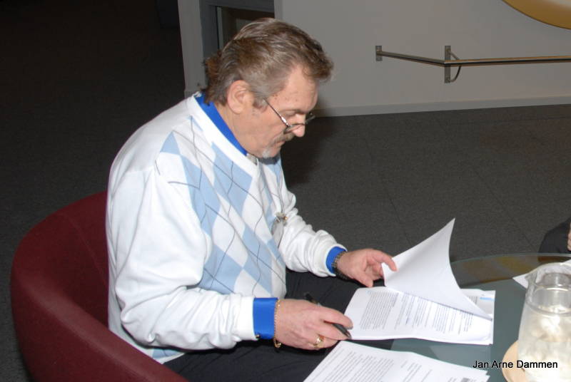 Her forbereder Oddvar seg til sitt innlegg i Stortingets åpne høring i 2008 om en sterkere satsning på yrkessykdommer.